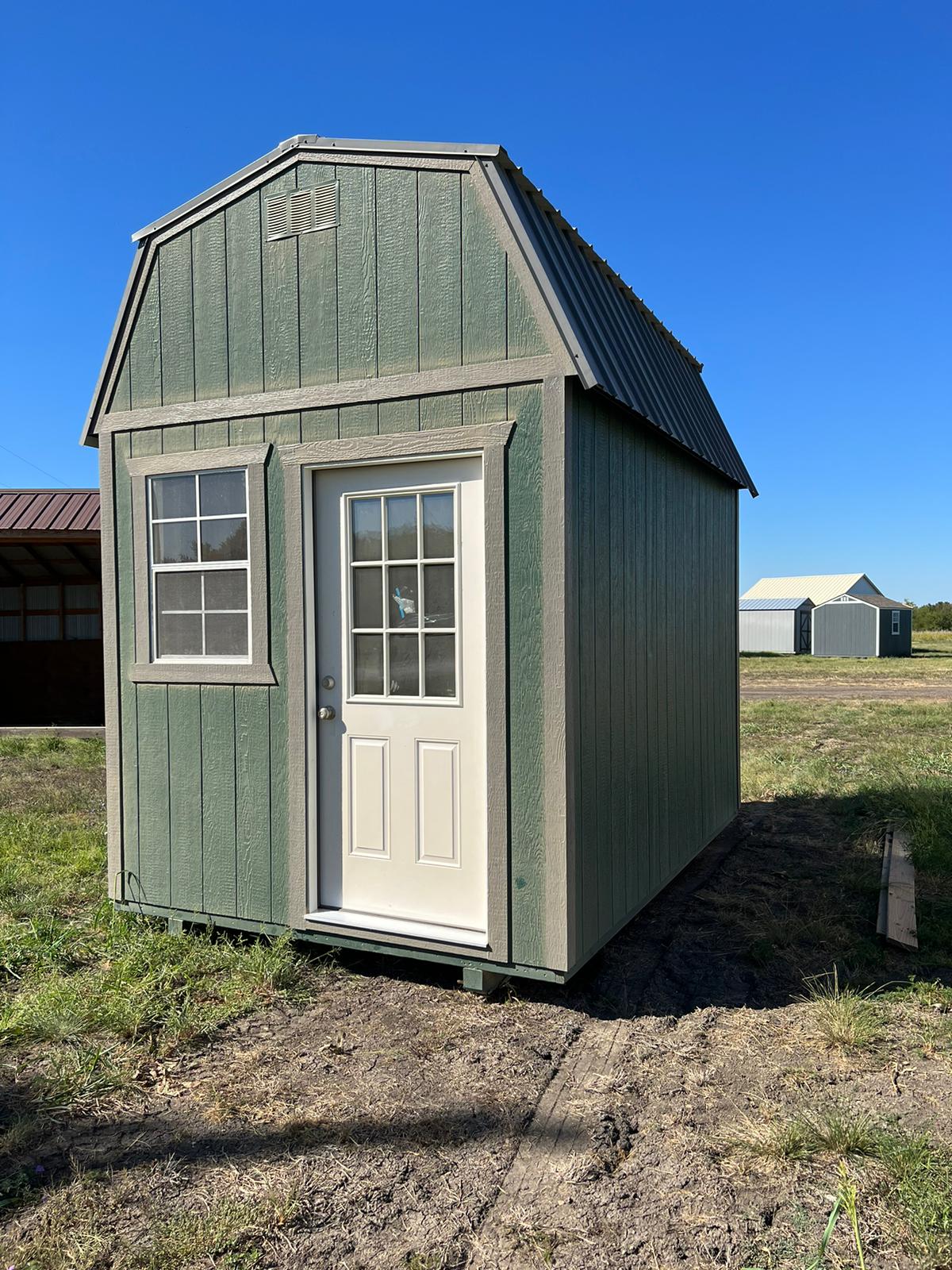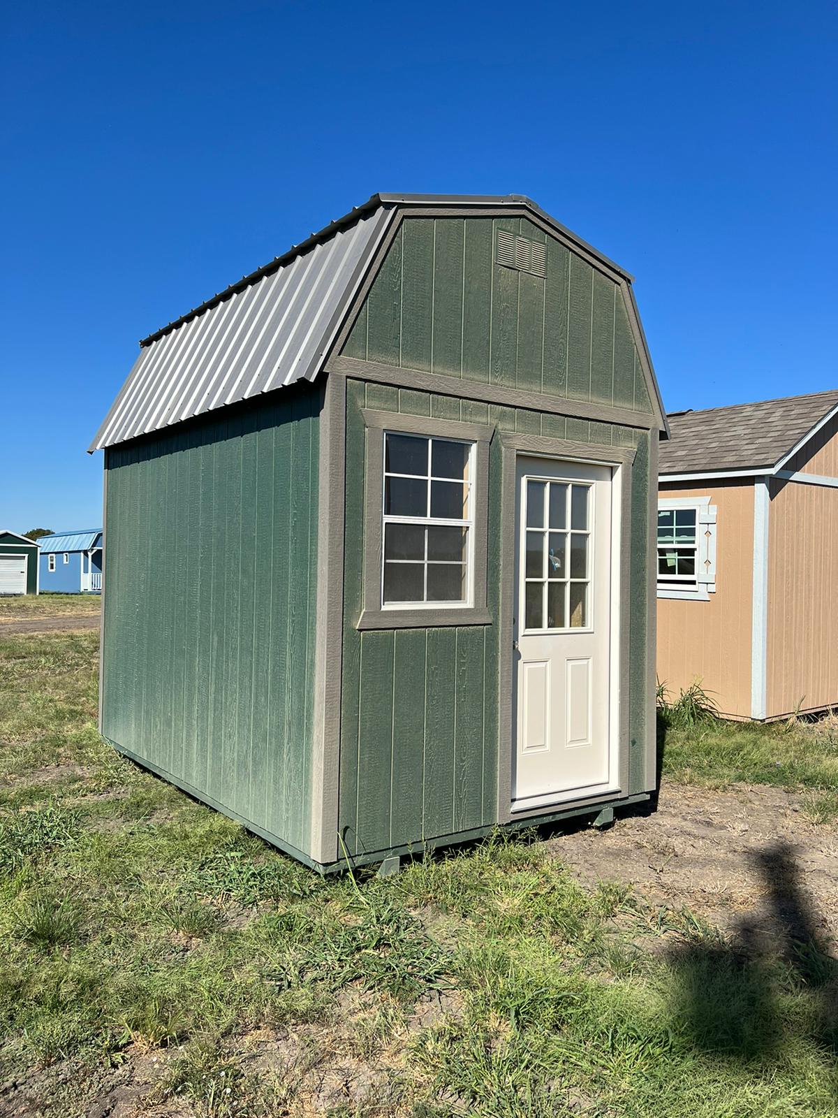 This 8×12 Economy Lofted Barn offers a unique layout that maximizes usable space, making it ideal for a range of uses, from a guest house to a personal retreat.