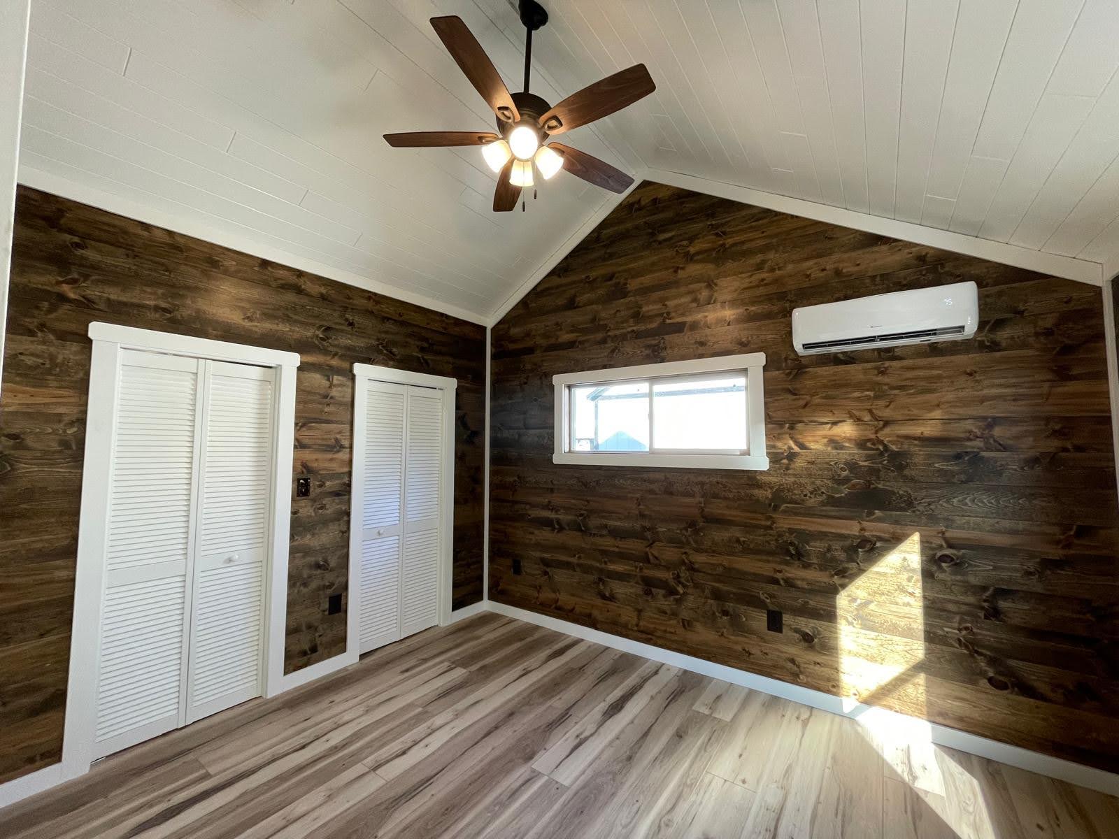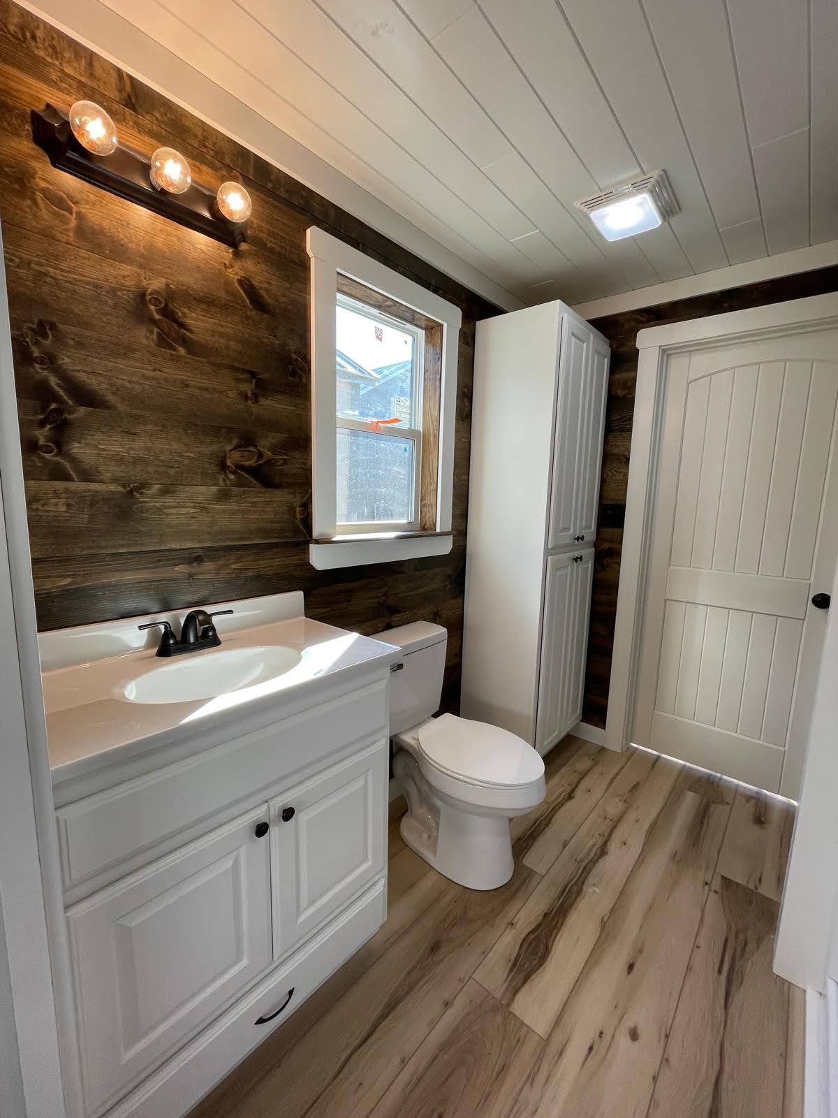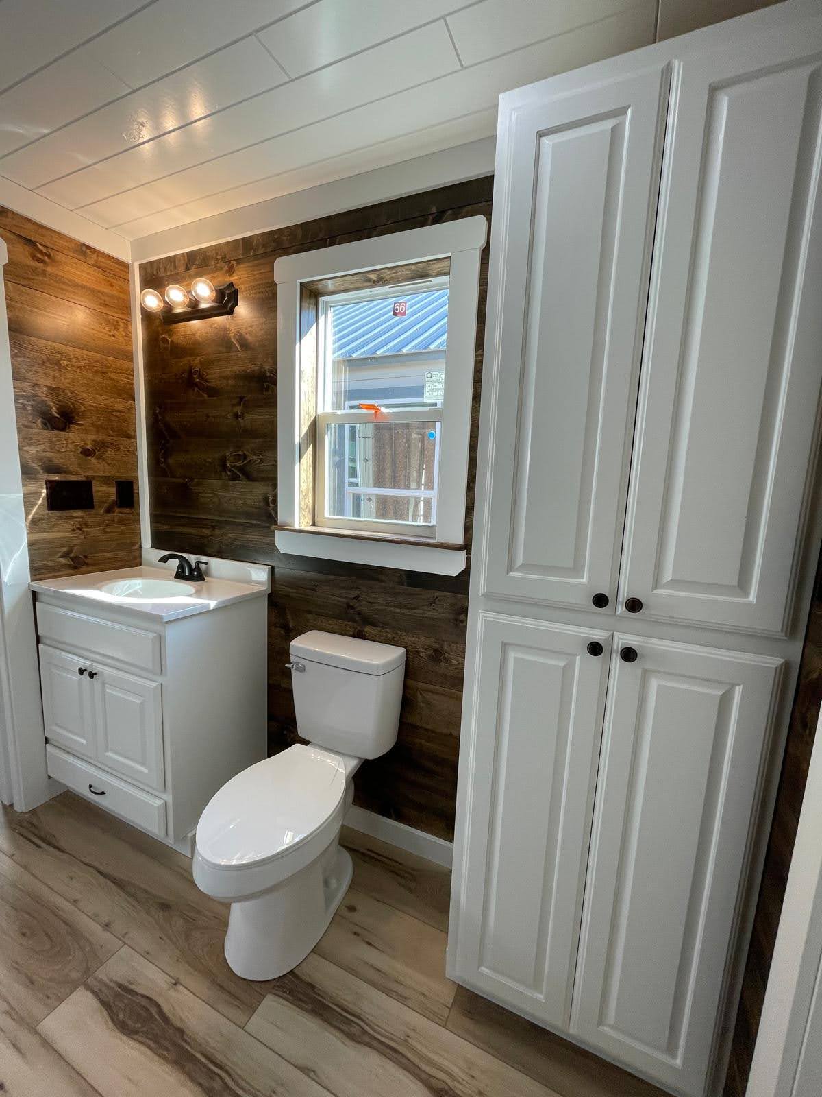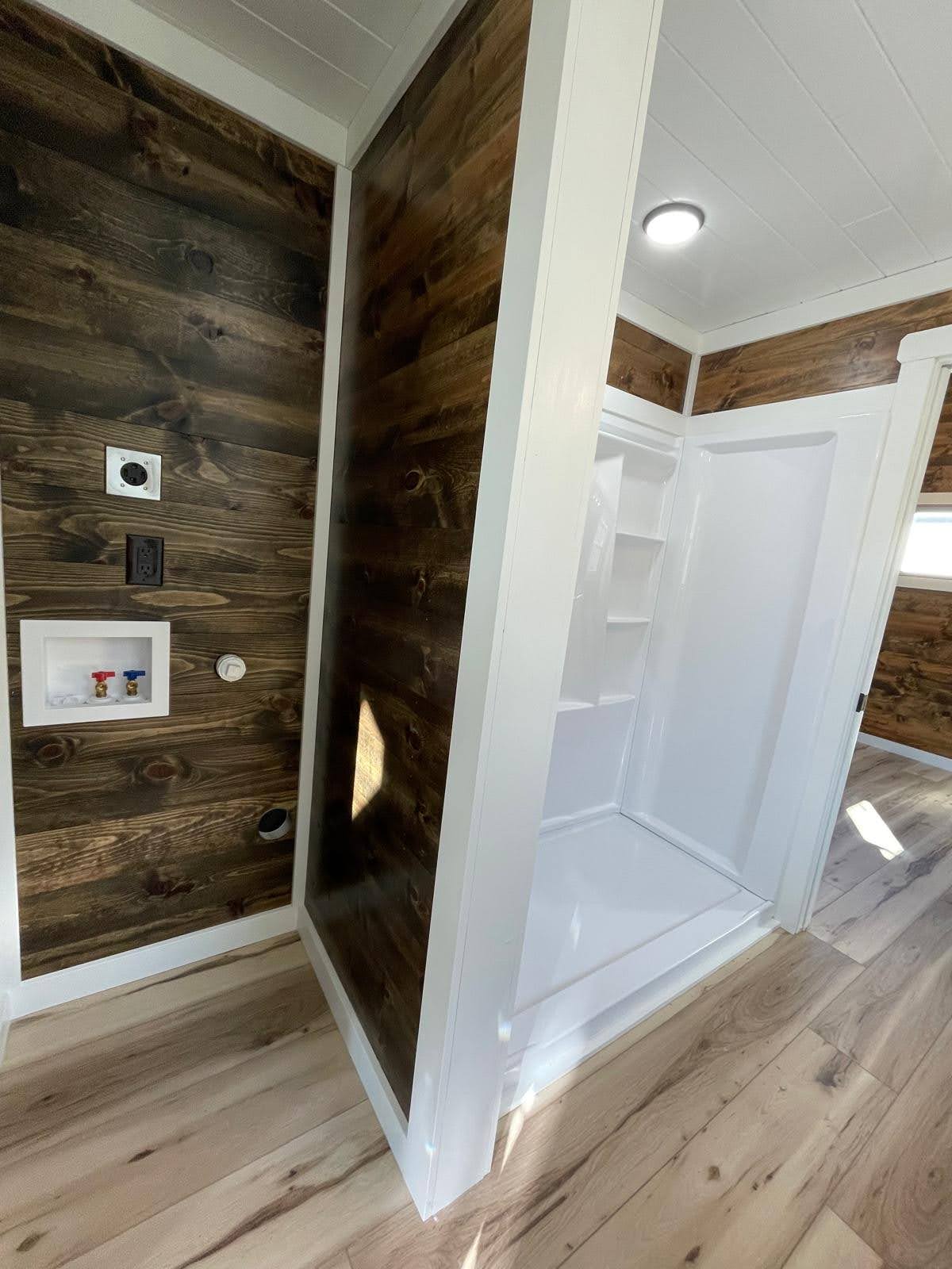 The Silverwood redefines what’s possible in tiny home luxury. With 608 sq.ft. of beautifully arranged space, this model blends elegance with everyday function. A bright queen bedroom, spa-inspired bathroom, and designer kitchen create a living experience that’s as comfortable as it is Instagram-worthy. Dormer windows fill the home with light, while details like barn-door closets, optional loft, and premium kitchen storage solutions make it both practical and polished. Whether set beneath the pines or overlooking open water, the Silverwood is a true retreat wrapped in woodgrain and wow-factor.