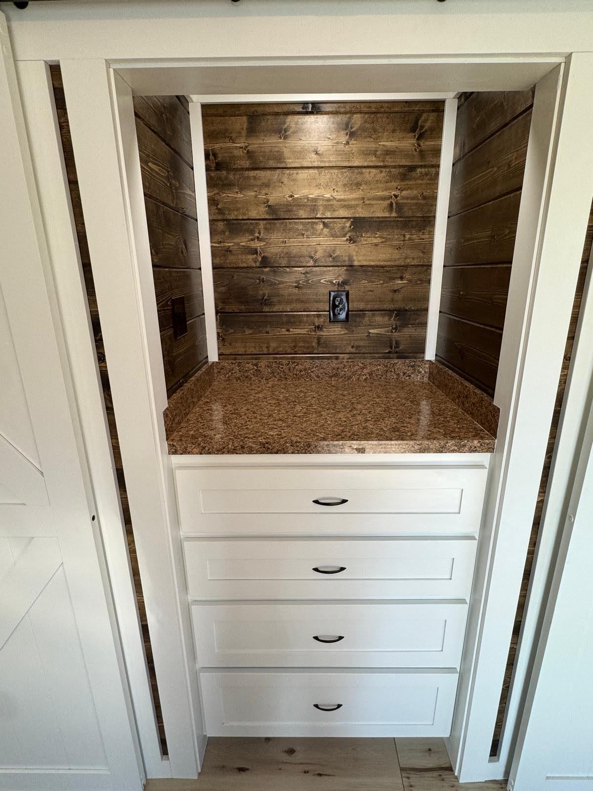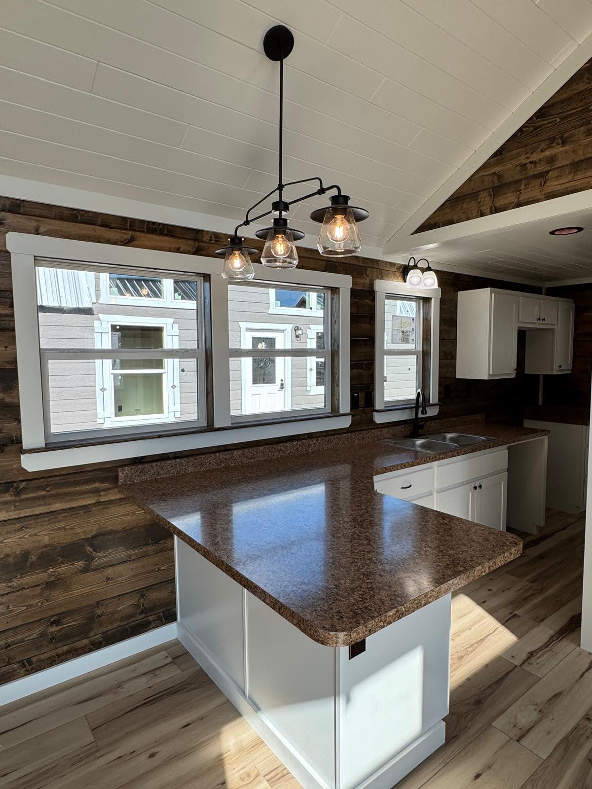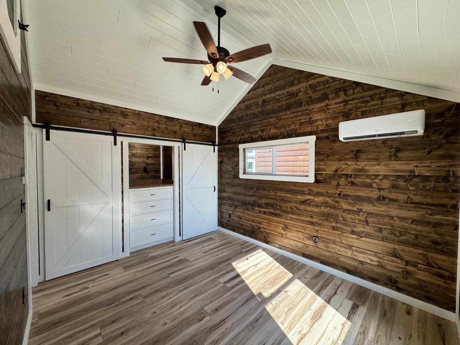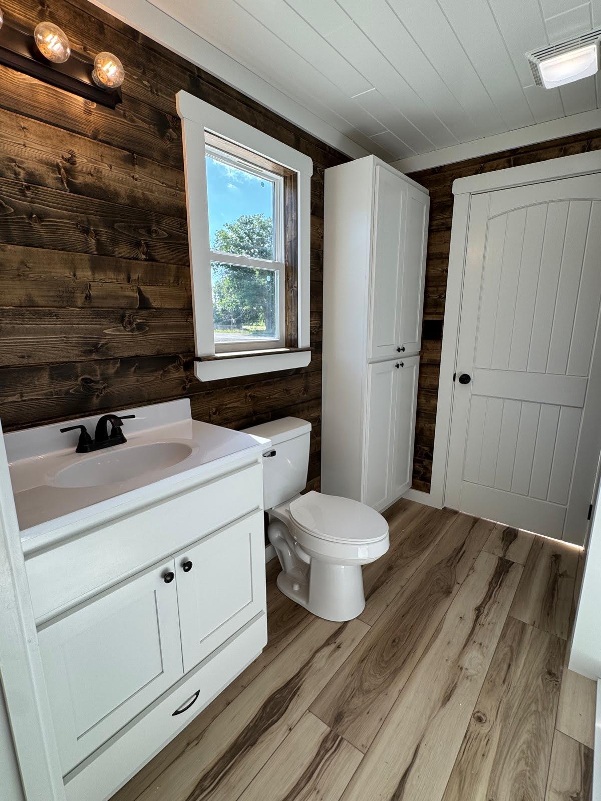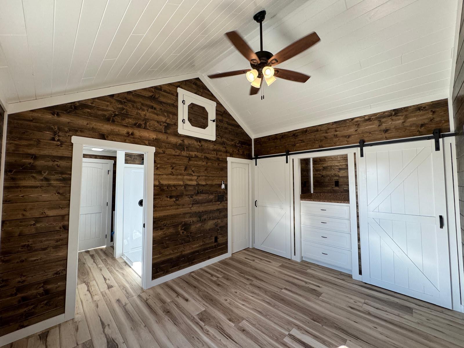 The Silverwood redefines what’s possible in tiny home luxury. With 608 sq.ft. of beautifully arranged space, this model blends elegance with everyday function. A bright queen bedroom, spa-inspired bathroom, and designer kitchen create a living experience that’s as comfortable as it is Instagram-worthy. Dormer windows fill the home with light, while details like barn-door closets, optional loft, and premium kitchen storage solutions make it both practical and polished. Whether set beneath the pines or overlooking open water, the Silverwood is a true retreat wrapped in woodgrain and wow-factor.